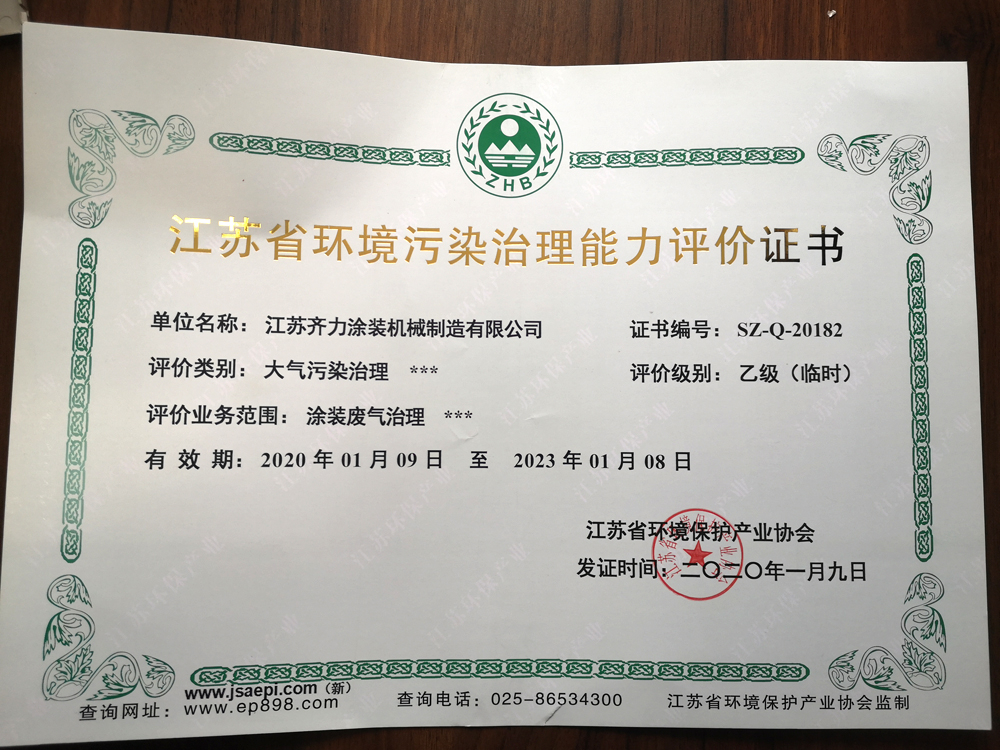 江蘇省環境污染治理能力評價證書正本